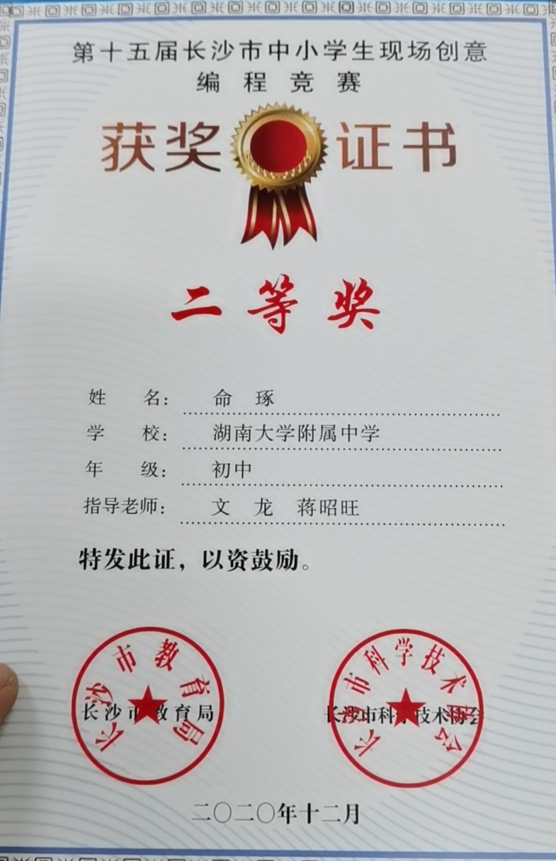 长沙市中小学生现场创意编程竞赛获奖