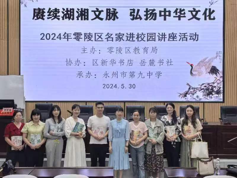 2024年5月30日,由零陵区教育局主办,零陵区新华书店、岳麓书社协办,永州市第九中学承办的“书海领航·名家进校园”活动在永州九中报告厅举行。